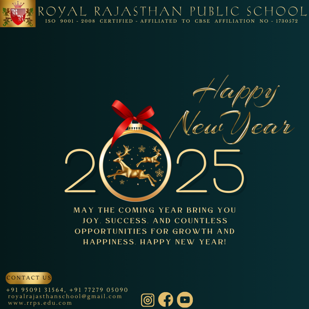 The Royal Rajasthan Public School wishes a joyous and prosperous New Year to all our esteemed teachers, brilliant students, and supportive parents. Together, let’s embrace new opportunities, achieve greater heights, and make this year extraordinary. Here’s to success, happiness, and endless learning in 2025! 🌟🎓